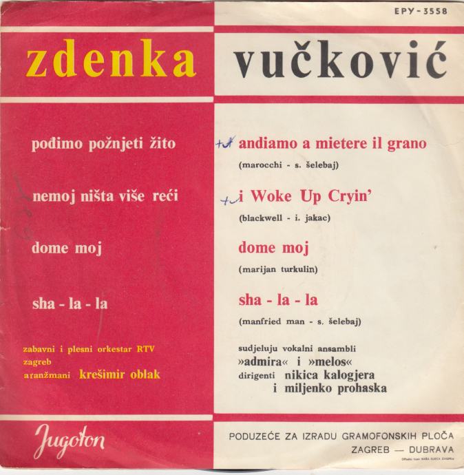 ZDENKA VUČKOVIĆ POĐIMO POŽNJETI ŽITO /DOME MOJ SINGL GRAMOFONSKA PLOČA