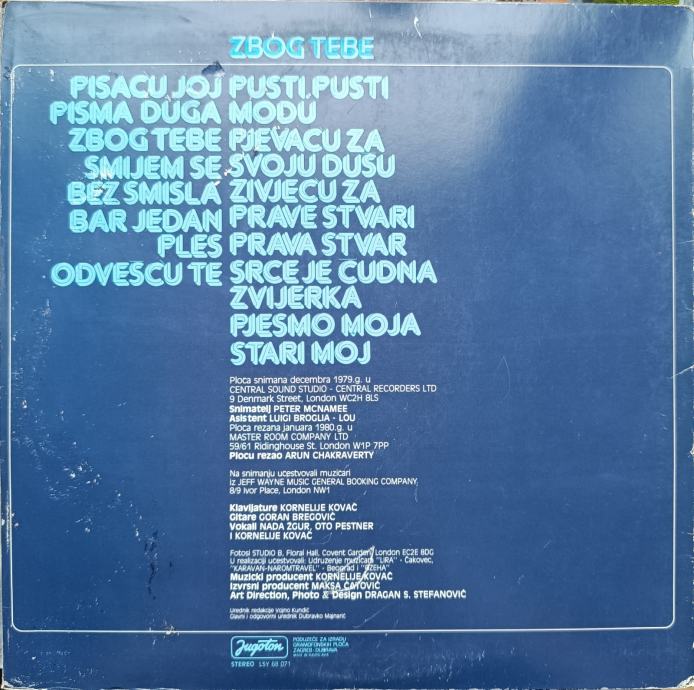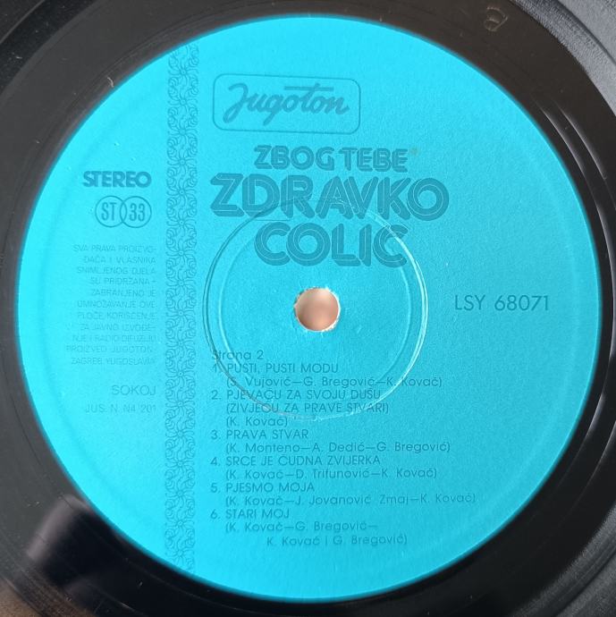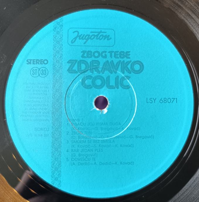Zdravko Čolić - Zbog tebe gramofonska ploča LP