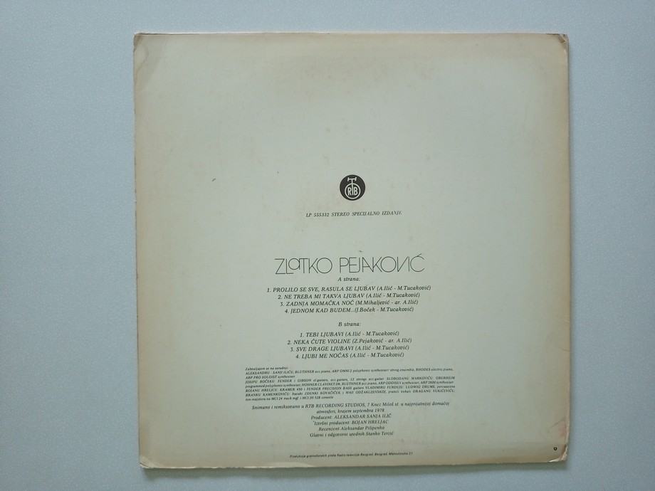 Zlatko Pejaković – Tebi ljubavi, gramofonska ploča, PGP RTB 1979.