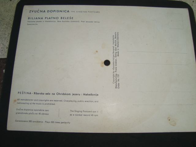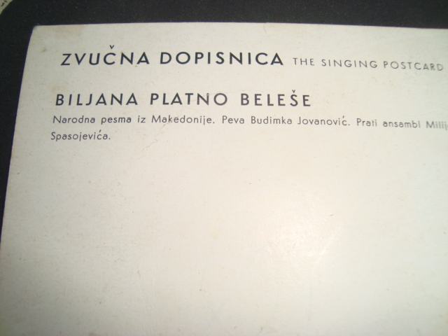 Prodajem ispravnu dobro očuvanu zvučnu dopisnicu sa narodnom makedonskom pjesmom,dimenzija 21x15cm.