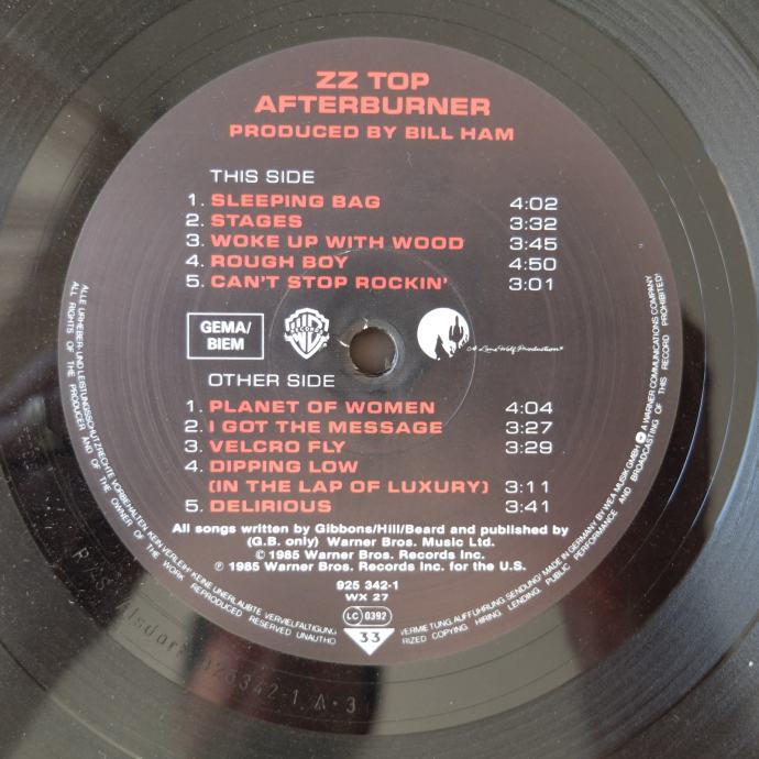 Prodajem gramofonsku LP ploču ZZ Top – Afterburner