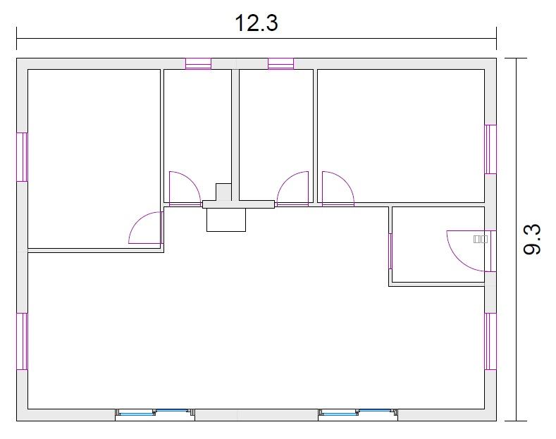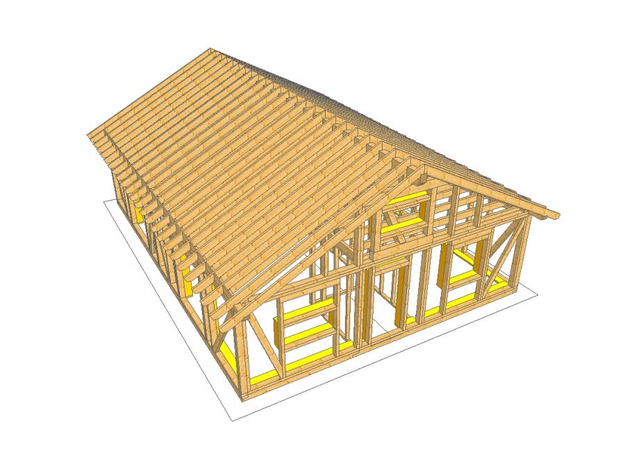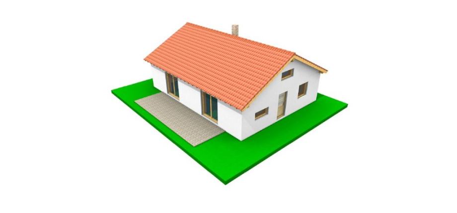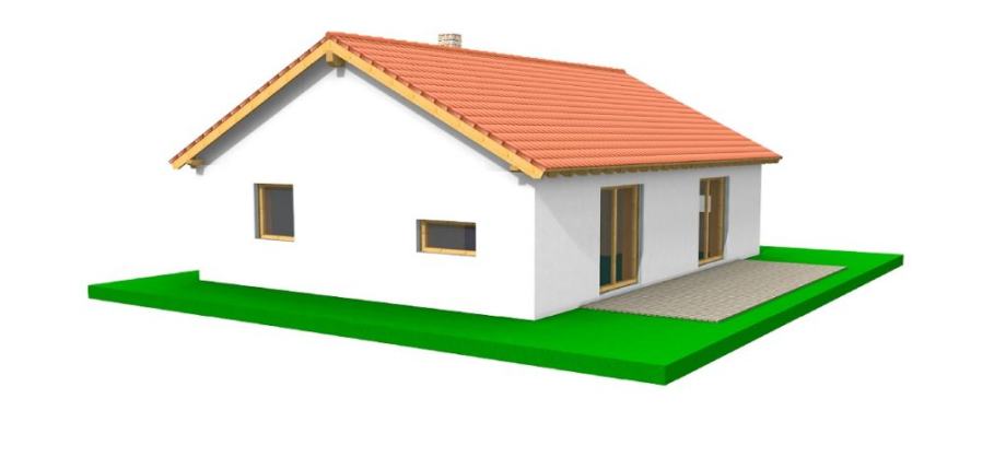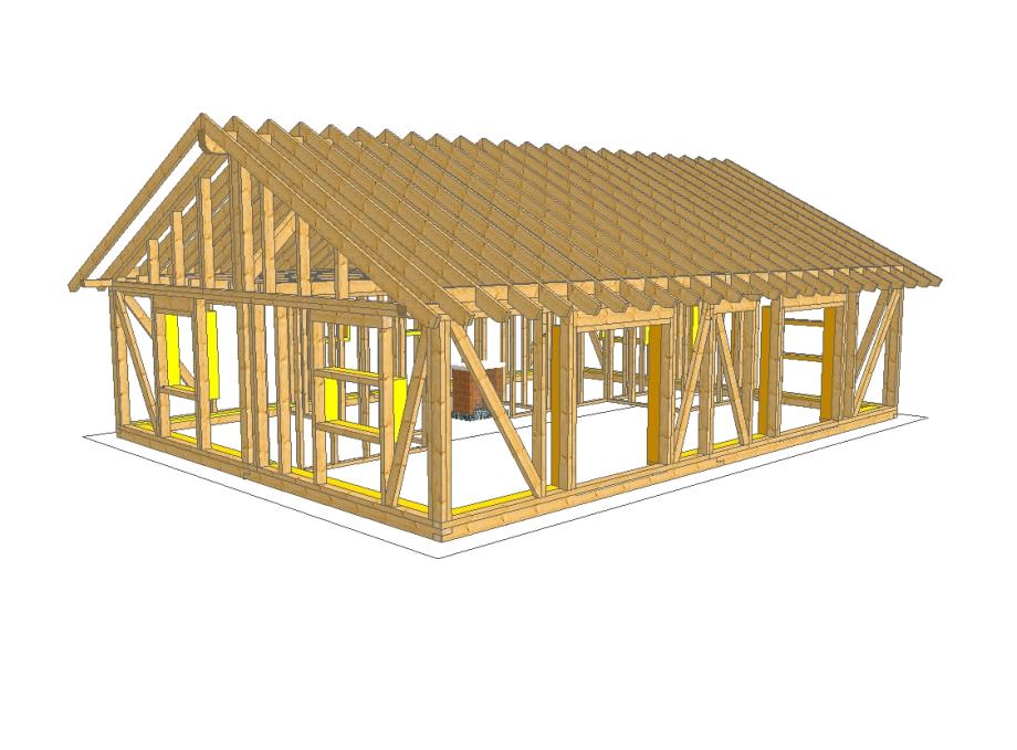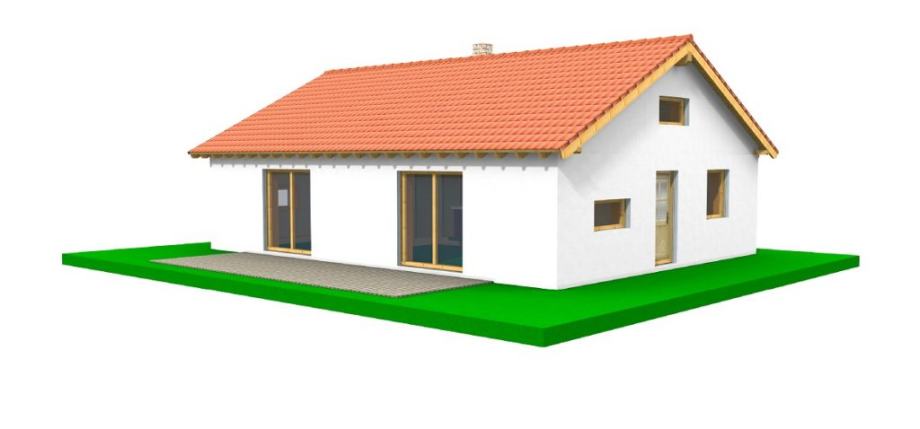 Nudimo Vam drvenu skeletnu kuću "na paletu" ili s montažom, tlocrtnih dimenzija 9,3 x 12,3 m, dvovodnog krova, nagiba 27 stupnjeva. Bruto površina stambenog prostora (vanjski gabariti) iznosi 115,00 m2.