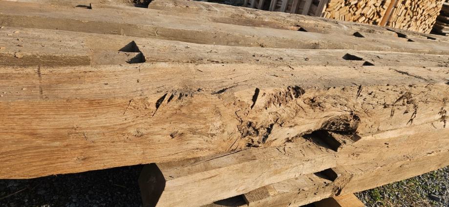 Grede od punog drveta, hrastovina, #1 od stare srušene pilane. Idelano za gradnju ili uređenje interijera. U vrlo dobrom stanju, cijena je iskazana za cijeli paket.