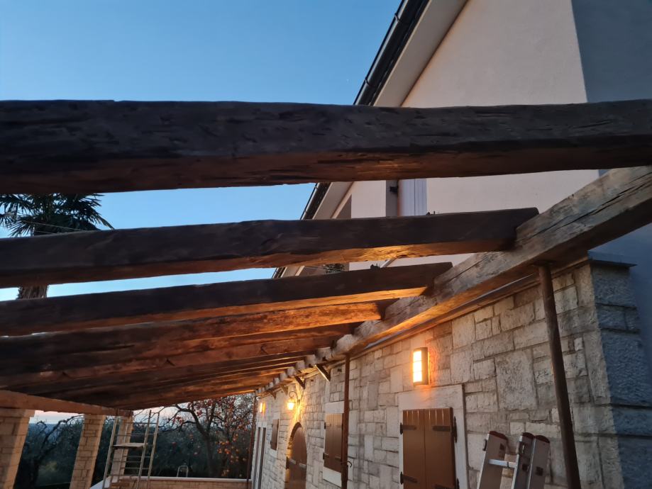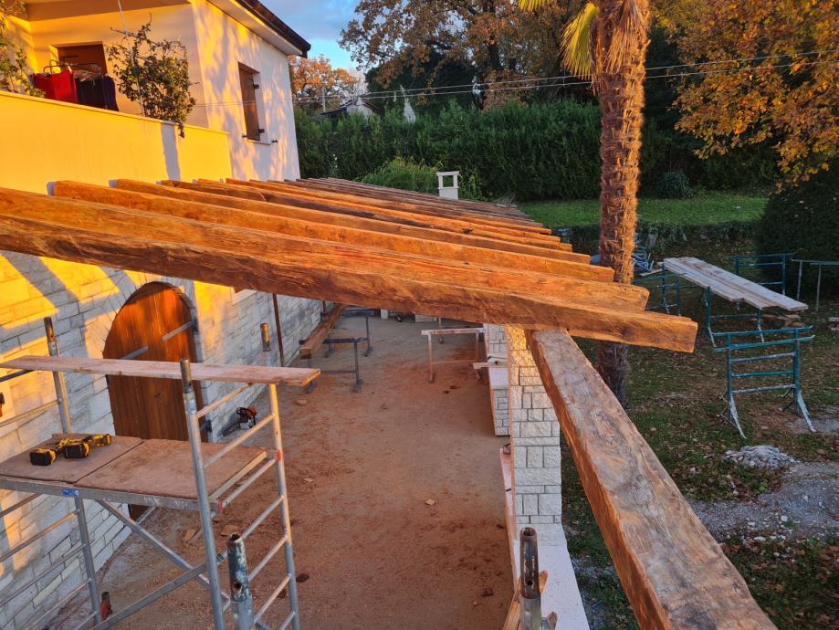 Izrada I montaža pergole od stare stoljetne hrastove građe.