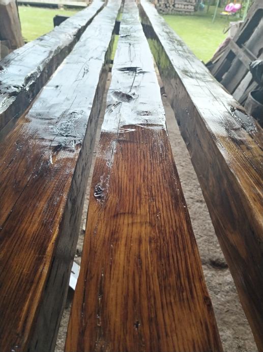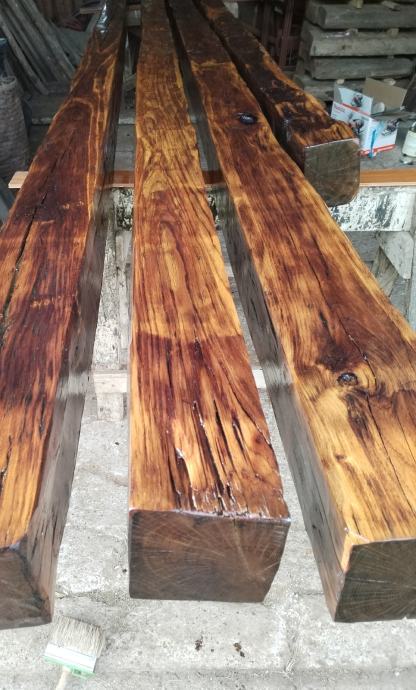 U ponudi imamo stare hrastove grede svih dimenzija, obrade po zeljama (četkanje, šlajfanje, prajmeri, bojanje i zastita ovisno o izloženosti vremenskim uvjetima.) ispuna epoxy smolom.