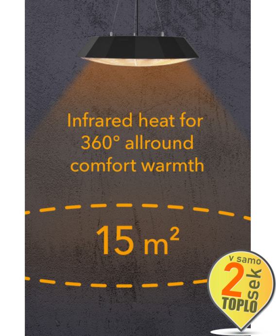 • Vrsta grijanja: dugovalno infracrveno (grije ljude, ne zrak)