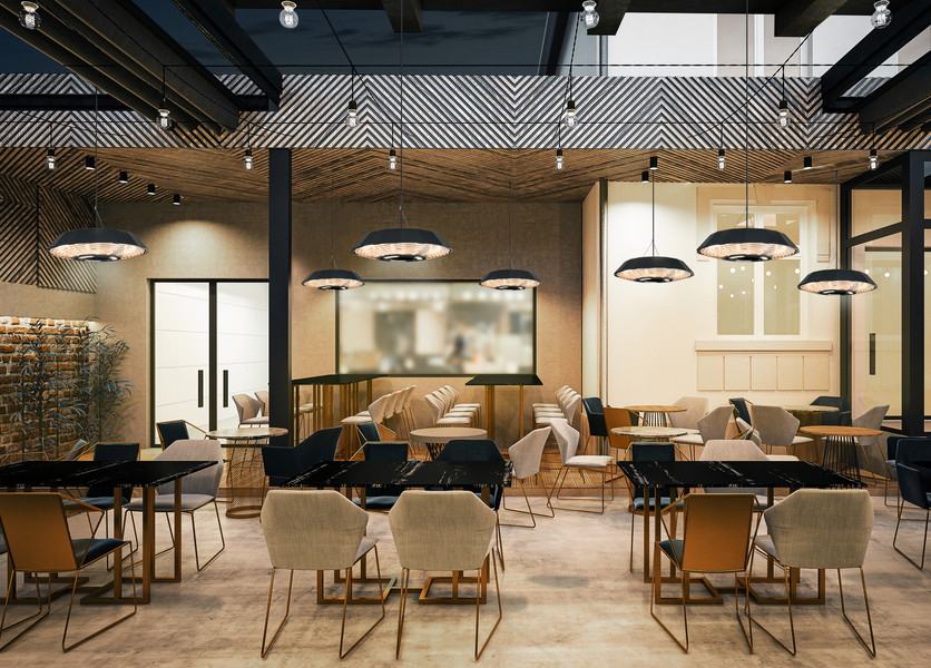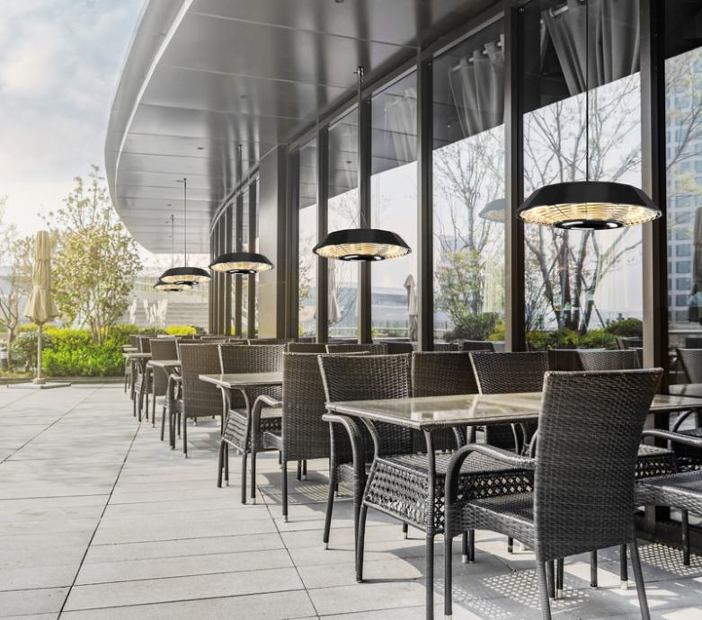 Stropni IR grijač s LED osvjetljenjem i otpornošću na kišu – idealan za ugostiteljstvo