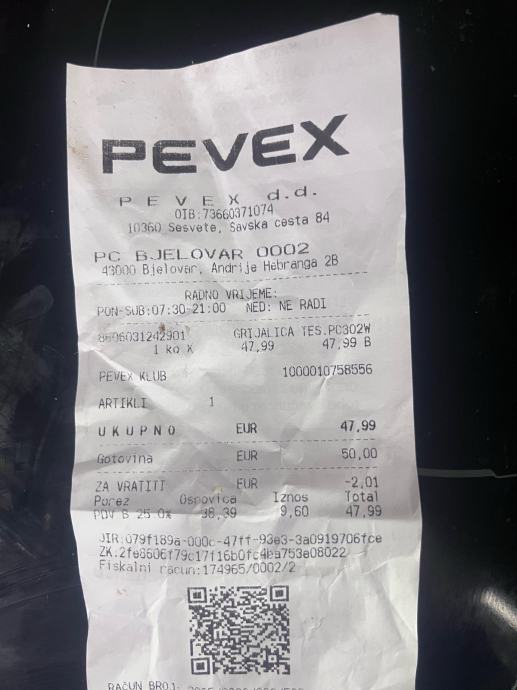 Tesla električna grijalica kupljena u pevexu, nova nikad upaljena! 40€