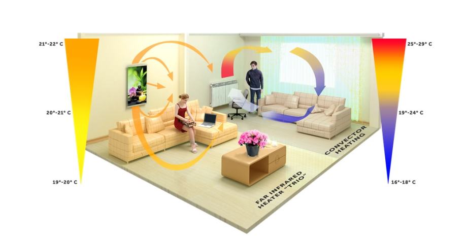 Fleksibilna infracrvena el.grijalica "TRIO" zdravo je i ugodno grijanje u vašem domu, koje također ozbiljno štedi električnu energiju, a time i vaš novac. Potrošit ćete manje energije i novca, jer ćete se ugodno osjećati s infracrvenom tehnologijom na 20C bez gubitka grijanja nasuprot 25C kada koristite standardnu grijalicu s velikim gubitkom energije.