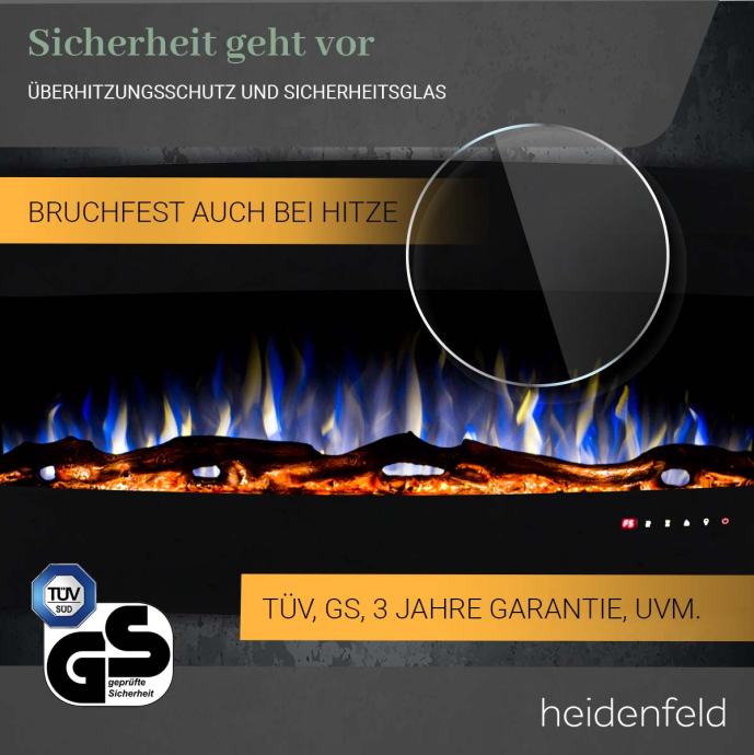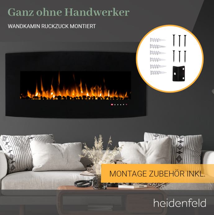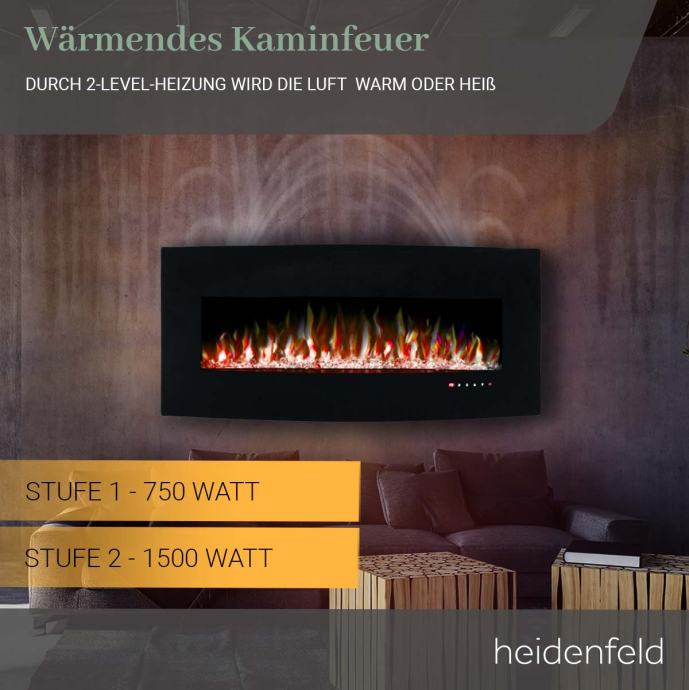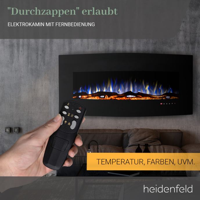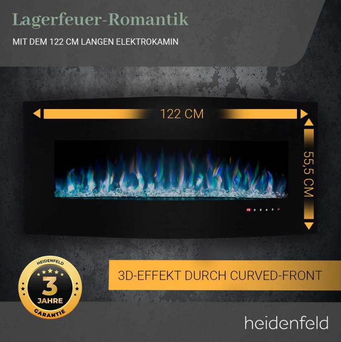 Električni kamin HF-WK400, zakrivljeno staklo, 3D efekt plamena