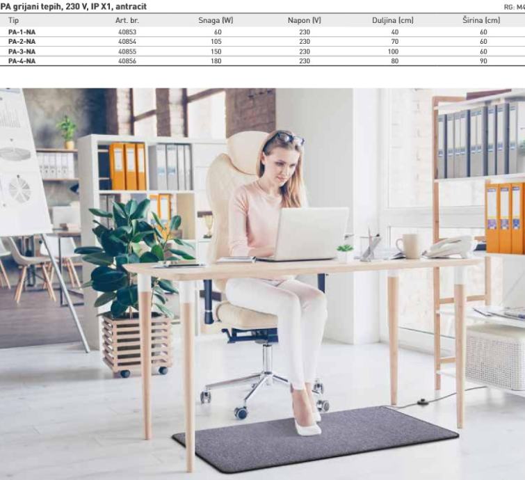 Grijani tepisi na ugodan način sprječavaju hladne podove u uredu, kod kuće, iza prodajnog pulta, na blagajni u trgovini ili na izložbenom štandu.