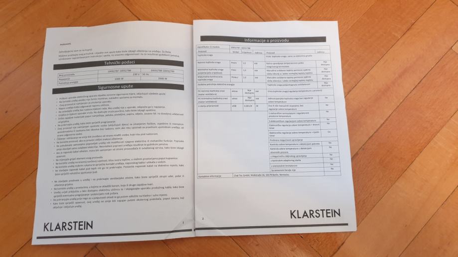 Prodaje se kao i u opisu oglasa Klarstein grijalica od 1000 W.