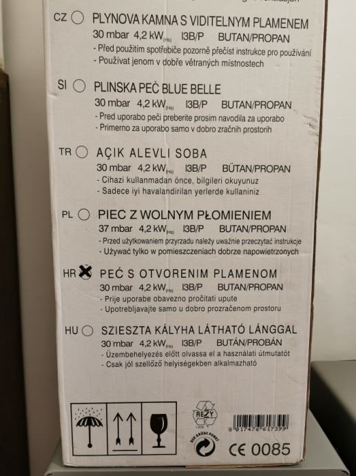 Kompaktna plinska peć Blue Bell uklapa se u svaki stambeni prostor. Plamenik ove peći generira vidljivi plamen te proizvodi učinak grijanja sličan električnim ventilatorskim grijalicama. Sami plamenik je veoma robustan i gotovo neograničenog roka trajanja. Peć posjeduje integrirani detektor razine CO2 pomoću kojeg analizira razinu plina u prostoriji i automatski isključuje peć ukoliko postotak plina prijeđe nedozvoljene razine. Piezoelektrični efekt osigurava sigurno paljenje, dok je snagu grijanja moguće regulirati u dva stupnja.