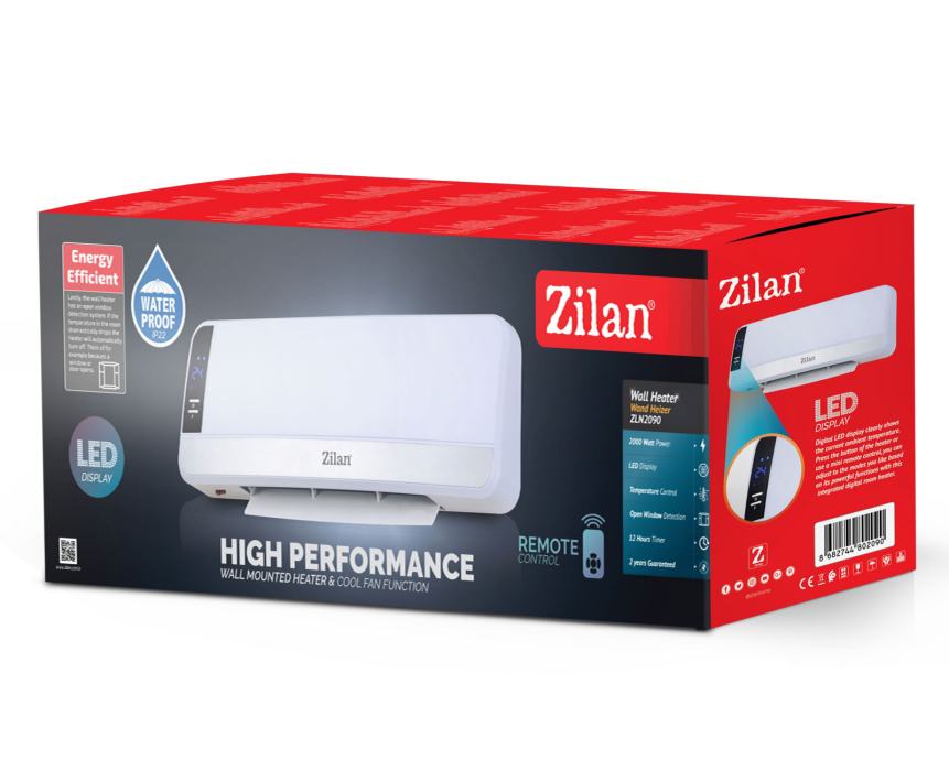 Grijalica zidna, daljinski upravljač, 2000W, LED Display