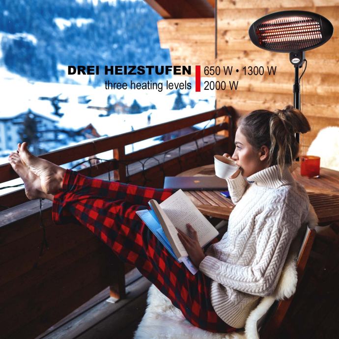 Infracrvena električna grijalica za terasu od 2000 W s 3 postavke IPX4