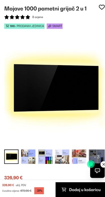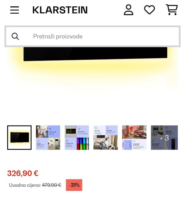 Novi panel staklo keramicki bijeli sa ledicama mijenja boje i temperaturu kak si namijestite preko aplikacije 1000w meni je viska cijena po dog