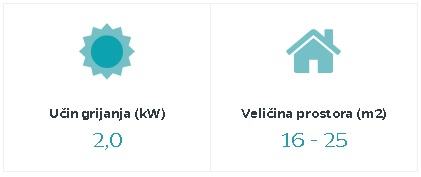 • Prep. veličina prostorije do 24 m2 / 60 m3