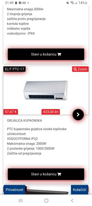 Prodaje se nova kupaonska grijalica marke Elit.