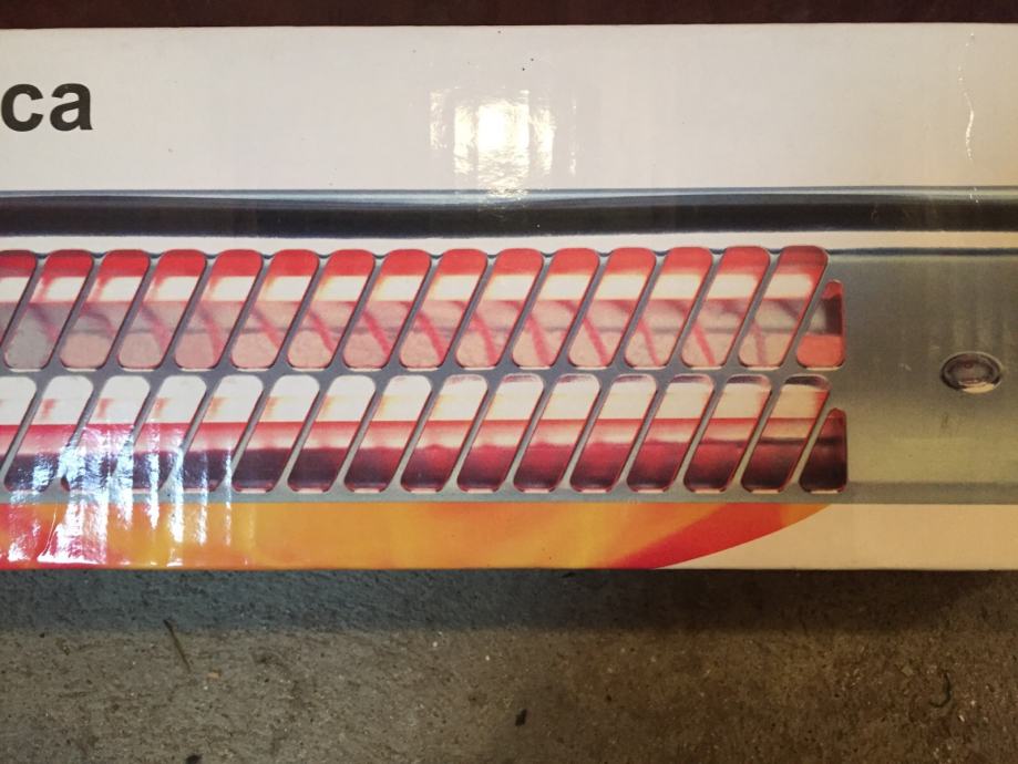 Grijalica NOVA u kutiji u srebrnoj boji vrlo moderna infra crvena kvarcna za kupaone dvije spirale, razine snage 600 - 1200 W brzo zagrije prostor.