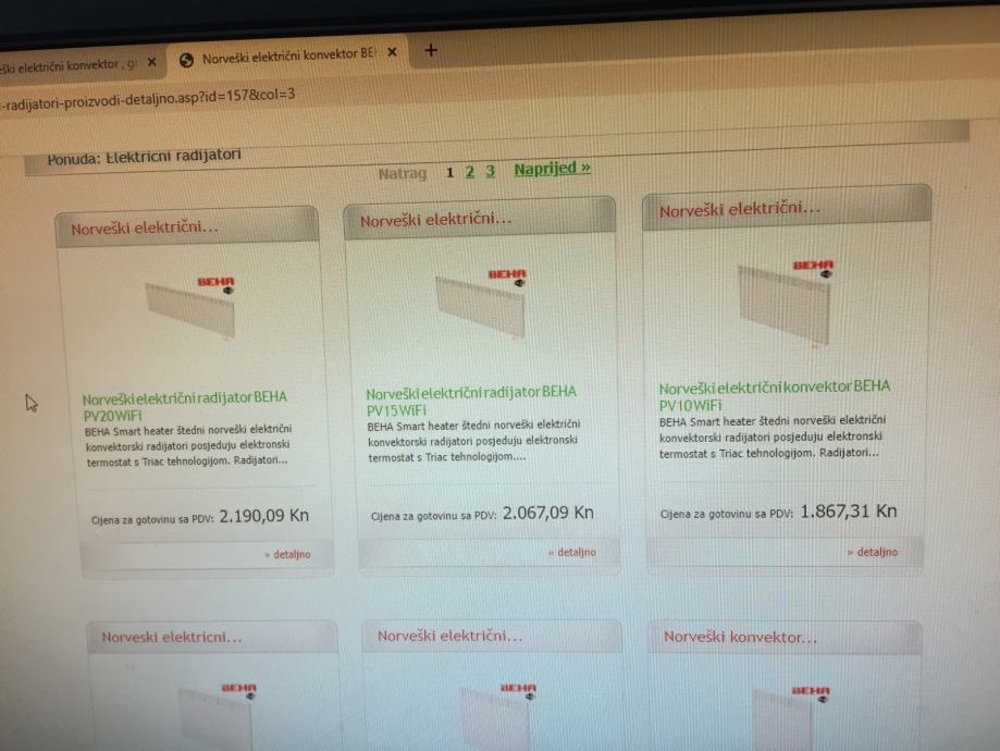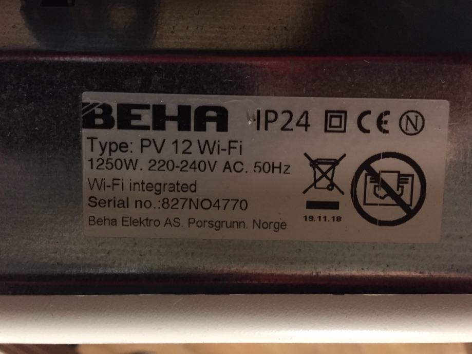 Norveški električni konvektor , grijalica BEHA PV12 WiFi ,1500 kn