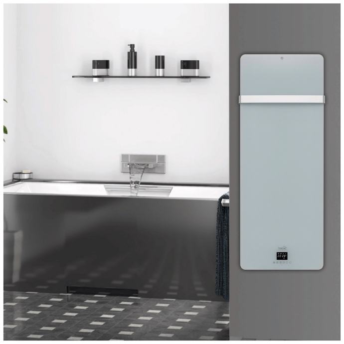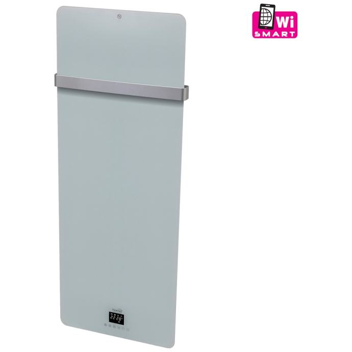 Pametna panel grijalica FKG 850 WIFI Smart je praktična opcija grijanja, jer se može montirati na zid, tako da se može uklopiti u mali prostor. Preporučena uporaba u kupaonicama. Njena snaga grijanja je 850 W. Kontrola preko dodirnih tipki na kontrolnoj ploči ili pomoću aplikacije za pametni telefon koji radi u WiFi okruženju kod kuće. Infracrvena ploča za grijanje jamči sigurnu upotrebu jer se automatski isključuje u slučaju pregrijavanja. LED display, staklena metalna prednja strana i metalna šipka za ručnike, timer 24 h, tjedni program, elelektronički termostat, 2 nivoa grijanja, dječija brava. Dužina napojnog kabela 1.4 met., napajanje 230 V ~ / 50 Hz, dimenzije 470 x 1220 x 70 mm, IPX4. Kompatibilno sa Android 4.1 i više, iOS 8.0 i više