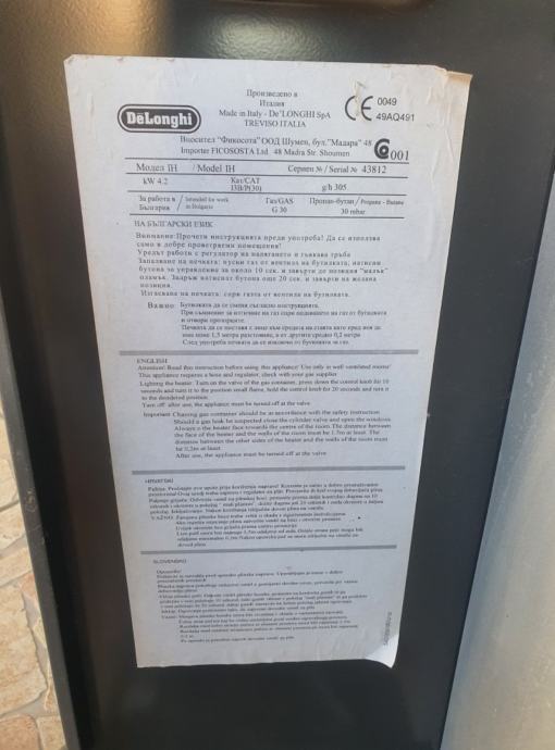 Prodajem plinsku grijalicu na bocu DeLonghi Hi-Power na kotačićima koji omogućuju lako premještanje. Grijalica ima prednju zaštitnu rešetku s keramičkim infracrvenim grijanim elementom te regulator na gornjem dijelu uređaja. Sa strane se nalaze ručke za nošenje, a priključuje se na standardnu plinsku bocu od 10kg.