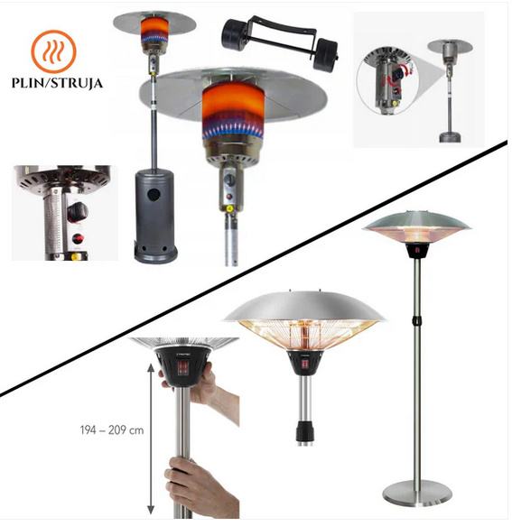 Idealno rješenje za dvorište, kafić ili restoran. Omogućuje Vam produženje ljetne sezone restorana na otvorenom. Plinska grijalica za terasu. Zaštita od zapaljenja i automatski prekid opskrbe plinom kada se grijalica nagne ili prevrne.