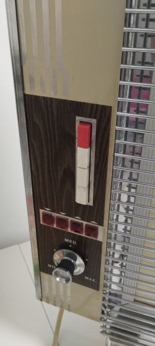Škofja-Lokva Made in Yugoslavia ...Model GCE 2101...Snage 2000w.Mogućnost 4stupnja 500/1000/1500/2000 W.Termostat...Intikator upljenih grijača. Grije sa obje strane električnim panelima kao i gore. Ispravna...