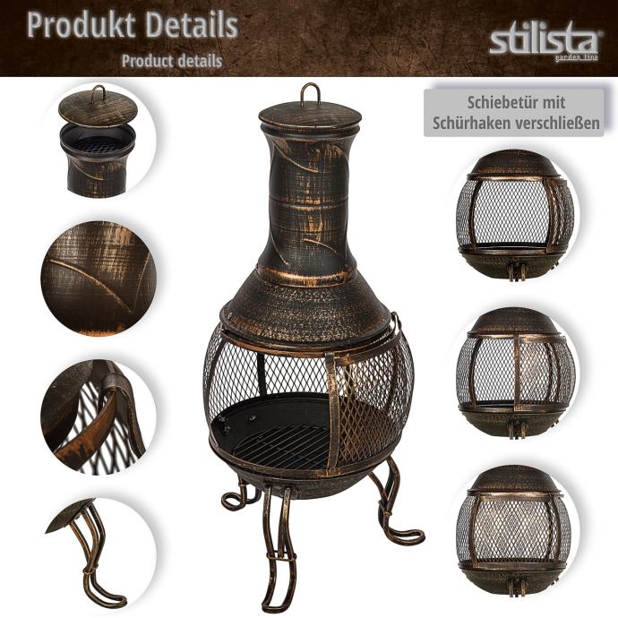 Vrtna grijalica visine 89 cm izrađena je od lijevanog željeza i čelika