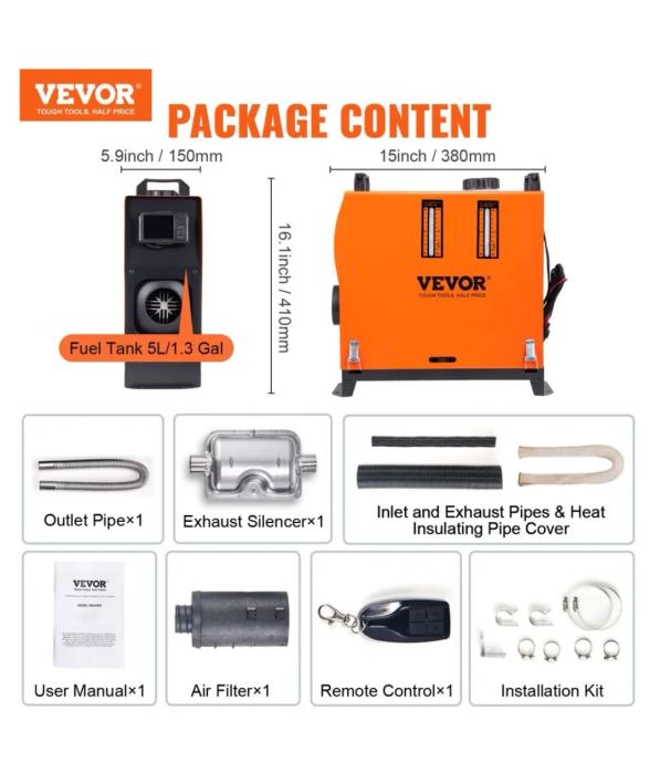 Sve u jednom dizelski grijac nov model najbolji na tržištu sa najmanjom potrošnjom 0.1 0.2.5l/h sa svim certifikatima za sigornu upotrebu. Mora bit Jer kod jeftinih modela mogucnost ispustanja co2 I dima Djelovi dostupni preko mene ugradjen 5l daljinski odličan za radione garaže avtodom 12v 8kw bregana (samobor) može I preko gls +18 eur tel