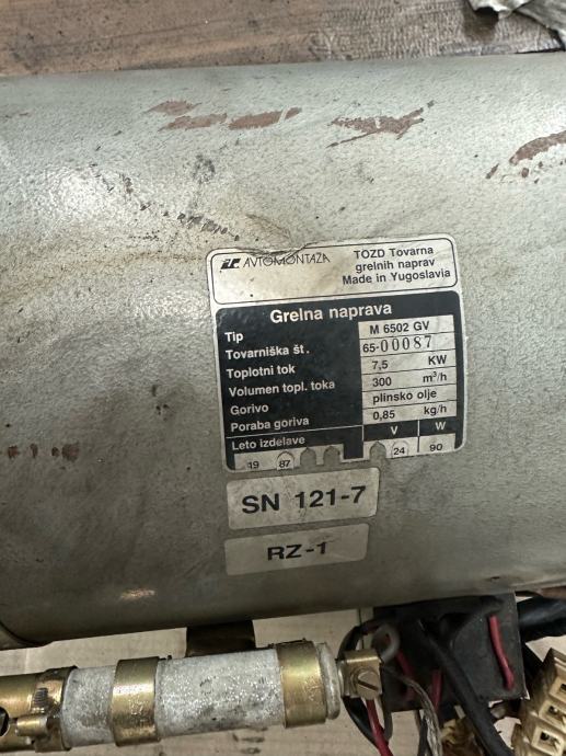 Uređaj je proizveden u WEBASTO-WERK G.m.b.H., Stockdorf bei München. Vidljiva je kontrolna ploča s prekidačima i indikatorima za regulaciju rada. Sustav se sastoji od glavne jedinice za izgaranje i spojenih metalnih cijevi za distribuciju toplog zraka.