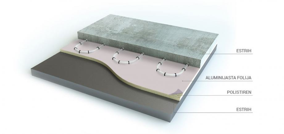 Betonska ploča koju trebate izravnati sa izravnalnom masom - estrih. Na zidovima u kutima instalirate izolacijsku traku pogodne visine. Kad se traka namjesti, onda se može započeti s polaganjem Izolacija - polistirena. Preko postojeće izolacije odgovarajuće kvalitete i debljine podnošenje posebne aluminijske folije.
