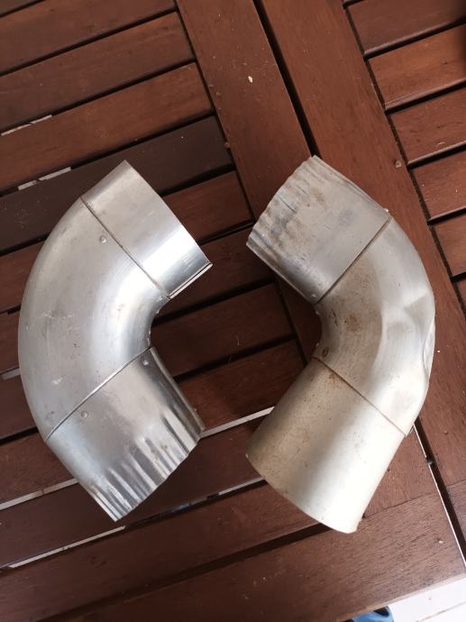 Prodajem korišteno alumijsko dimovodno koljeno 90°, ulaz 85mm, izlaz 90mm.