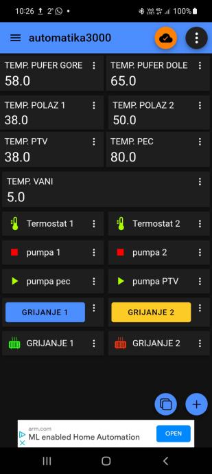 Također Imam automatiku za dva kruga grijanja što bi značilo 1 ili 2 pumpe i 2 miš ventila koji se svaki zasebno podešava. Recimo na jedan ventil grijete radijatore, a na drugi ventil podno grijanje. Pogledajte pod mojim ostalim oglasima.