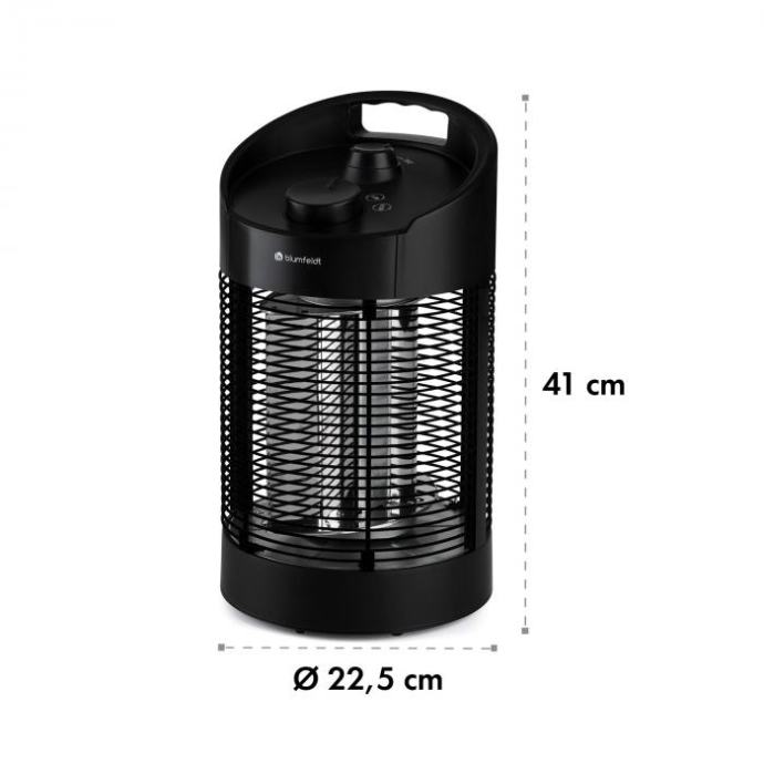 Snažna snaga grijanja u kompaktnom dizajnu: blumfeldt Heat Guru 360 Mini infracrveni grijač osigurava ugodnu toplinu u zatvorenom i na otvorenom u svako godišnje doba!Blumfeldt Heat Guru 360 Mini infracrveni grijač ne samo da zagrijava okolni zrak, već zahvaljujući svojoj IR ComfortHeat tehnologiji, prenosi toplinu izravno na ozračene ljude i predmete prema principu sunca. Grijač s opcijskom snagom od 700 ili 350 W osigurava visoku toplinsku snagu i učinkovito toplinsko zračenje. Oscilacijska funkcija distribuira topli zrak pod kutom od 360 ° ili 120 °. Ovisno o odabranom kutu, stup se polako okreće u odgovarajućem opsegu i optimalno i ravnomjerno opskrbljuje toplinom površinu koja se zagrijava.Zahvaljujući IPX4 klasi zaštite, električni grijač zaštićen je od prskanja vode i idealan je za vanjsku upotrebu. Razmotrena je i sigurnost: zahvaljujući presvučenoj rešetki s toplinski izoliranom površinom, uvijek se može bez problema dodirnuti vanjsku stranu uređaja, a integrirana zaštita od prevrtanja pouzdano osigurava automatsko isključivanje.Zahvaljujući kompaktnim dimenzijama i maloj težini, uređaj je maksimalno mobilan i može se koristiti gdje god je potrebno: samostojeći infracrveni grijač Heat Guru 360 Mini tvrtke blumfeldt.