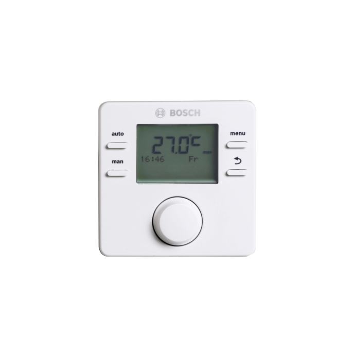 pozadinski osvijetljen LCD zaslon. Instaliranje na zid. Može se spojiti na Bosch kotlove opremljene s Bosch Heatronic 3 ili 4