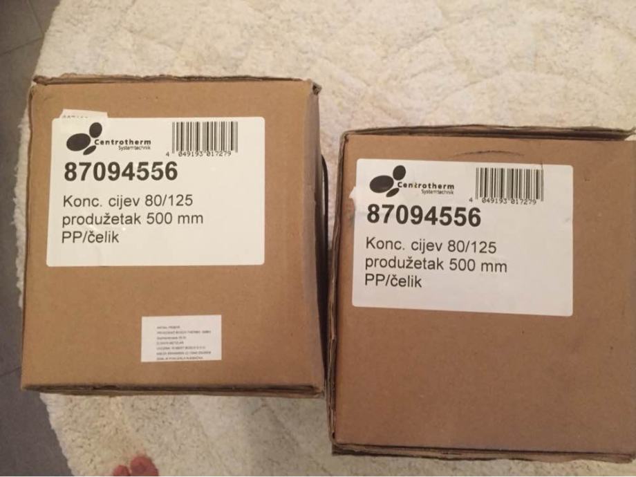 dvije od 500 mm nove nekoristene dimovodne cijevi za kondenzacijski bojler sa duplom stijenkon promjera 80/125.Cijena 150 kn komad