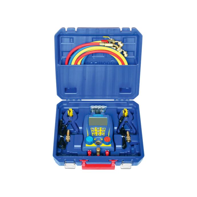 Također omogućuje očitavanje negativnih tlakova za propuštanja. Radna temperatura: 0° do 50°C. Vrijeme očitavanja tlaka i temperature: 50 sati. Vrijeme očitavanja vakuuma: 4 sata, automatsko isključivanje: 15 minuta. Sonda za temperaturu termoelementa: očitava trenutnu temperaturu i automatski izračunava temperaturu pothlađenja. Dodatni priključak termoelementa osigurava trenutnu temperaturu i automatski izračunava pregrijavanje.
