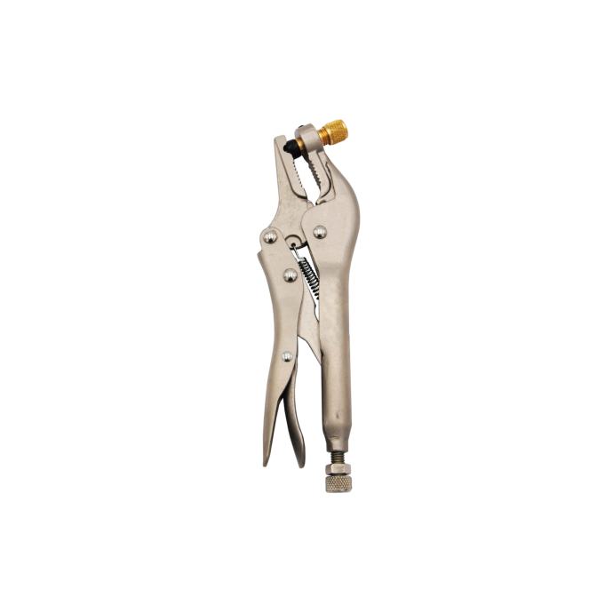 Kliješta za bušenje s tlačnim nastavkom, izrađena od visokokvalitetnog toplinski obrađenog čelika za dugotrajnost. -dizajniran za brzo zakačenje i bušenje cijevi rashladne tekućine -opremljen iglom visoke tvrdoće, kovanom od čelika legiranog volframom
