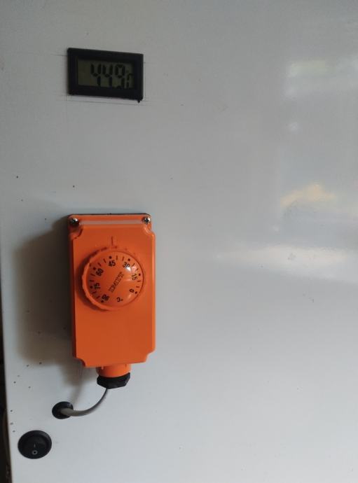 Grijač i ventilator nalaze se u donjem dijelu na mjestu kompresora i kroz donji otvor ubacuju topli zrak u kućište. Kroz gornji otvor i kanal na stražnjoj strani kućišta zrak se vraća na grijač i cirkulira kroz kućište. Guma na vratima i kućište u odličnom stanju(kao novo) .Uz malu dogradnju može poslužtii kao klijalište , sušara za pelud ili voće.