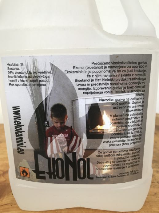 Bioetanol je ekološko gorivo koje se sastoji od 96% alkohola, čisto izgaranje bez mirisa, dima, pepela i čađi. Litra bioetanola u standardnom plameniku gori od 2,5-3h.