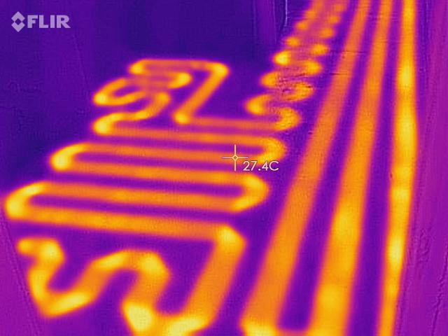 Grijanje nema gubitak energije tipičan za centralne sustave (gubici kotla, prijenos, regulacija). Iznimno niska potrošnja energije postiže se radom na niskim temperaturama s trakama koje pokrivaju do 90% površine i tako čine veliko grijaće tijelo .
