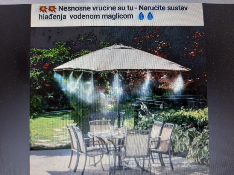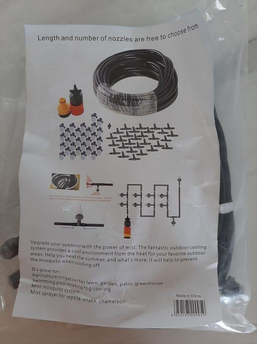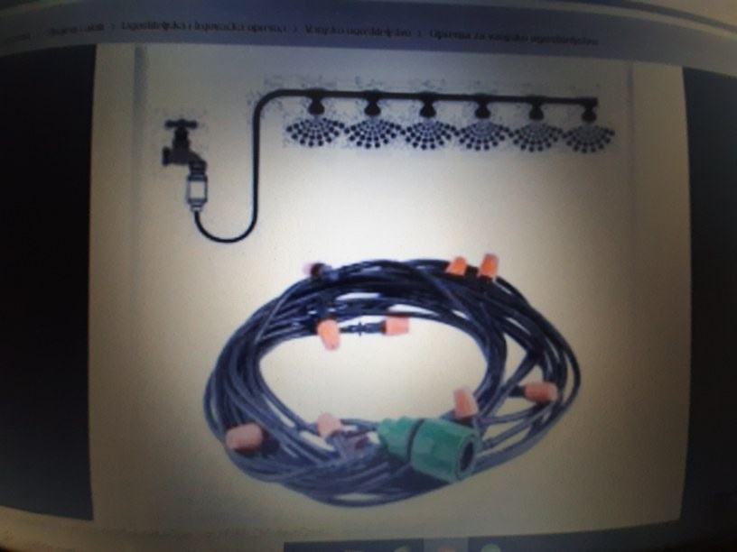 Vodena maglica za terase - sastoji se od 10 m tankog crijeva na kojem je 10 mlaznica, te konektora koji se spaja na slavinu.