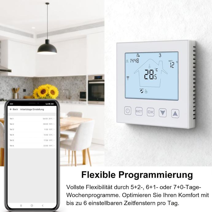 Izvrstan termostat za suhi kontakt, kontrola preko aplikacije putem WiFI i interneta. Kupljne u veljači 2025, kao nov!