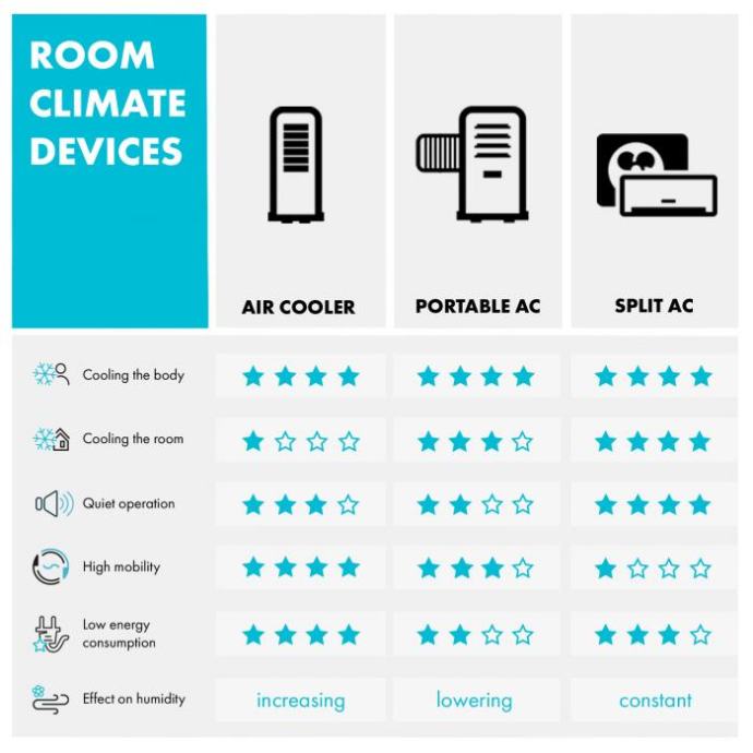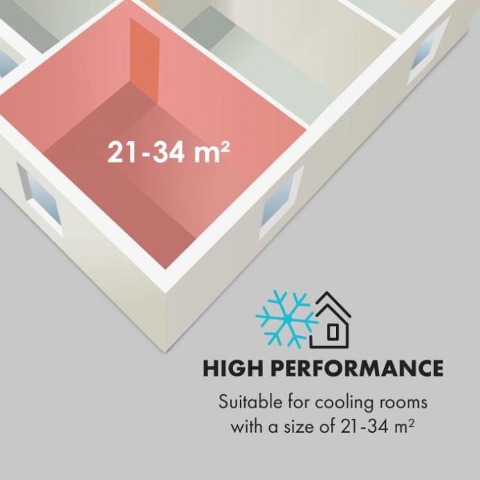 - Učinkovito: prikladno za hlađenje prostorija veličine 21 - 34 m²