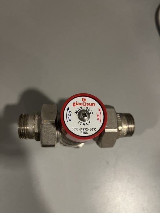 Miješajući termički ventil troputi sa holenderima Giacosun, za PTV, 3/4", 38-60°C, potpuno ispravan. Moguća dostava u Zagreb (Arena centar).