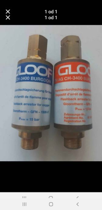 Nepovratni ventili GLOOR Kisik 50€ Nepovratni ventili Acitilen 50€