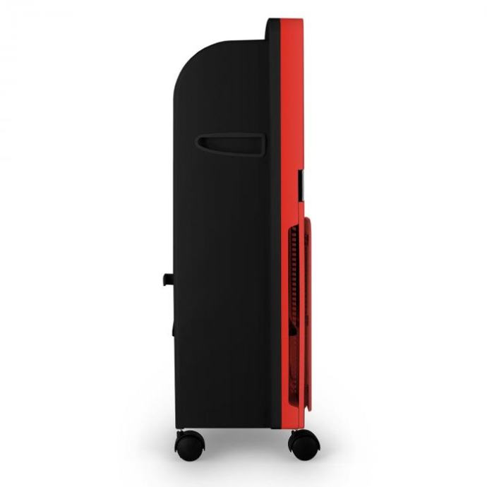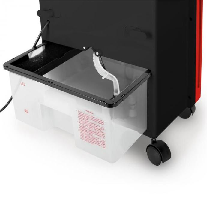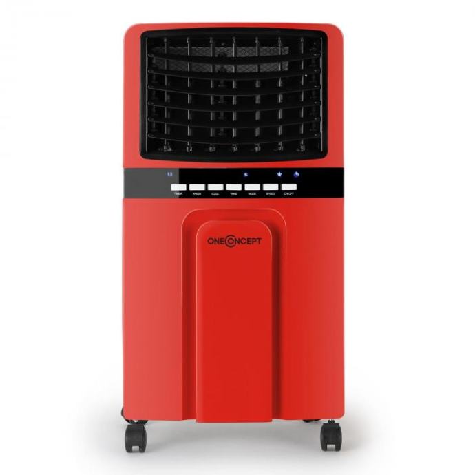 oneConcept Baltic Red efektni je hladnjak zraka koji jeftino i elegantno poboljšava zrak u srednje velikim prostorijama. Strujanje hladnoga zraka postiže se isparavanjem vode/leda iz 6-litarskog spremnika vode. Osim strujanjem hlađena zraka, uređaj Klarstein Baltic Red od uobičajenih se ventilatora razlikuje time što zrak ovlažava i čisti radi bolje klime u prostoriji. Temeljna je pogodnost hladnjaka zraka Klarstein u usporedbi s uobičajenim klimatizacijskim uređajima promišljena energetska učinkovitost - bez obzira na razinu energetske učinkovitosti klimatizacije. Uz potrošnju od samo 65 W, uređaj osjetno i dugotrajno osvježava male i srednje velike prostorije (otprilike do 50 m²). Troškovi rada samo u jednoj sezoni mogu se smanjiti za iznos s 2 ili 3 nule. Tri razine izvedbe i okretanje automatskim pokretom, koje se prema želji može isključiti/uključiti, omogućuju točnu prilagodbu aktualnoj vremenskoj prognozi, veličini prostorije i planiranom rasporedu sjedenja. Tri režima rada prema izboru pružaju daljnje mogućnosti prilagodbe. Primjerice, prirodni će se režim pobrinuti za strujanje zraka koje jača i slabi slično kao prirodni vjetar. Daljnji je plus hladnjaka zraka Klarstein to što s njim ne postoje nikakva ograničenja u postavljanju, dok neki mobilni klimatizacijski uređaji sadržavaju ispušnu cijev za odvod topla zraka te u blizini mjesta na koja se postavljaju mora biti prozor. Zahvaljujući četirima kotačićima te na bočnim stranama ugrađenim ručkama u paru, tu pogodnost uređaja Klarstein Baltic Red moguće je iskoristiti u potpunosti. U postavljanju ovog uređaja zapravo nema ograničenja ni u interijeru, ni u eksterijeru. Ni zatvaranje prozora i vrata nije potrebno. Na rad uređaja nije potrebno previše paziti zato što je potrošnja vode (količina: 1 litra) na sat tako niska da je tijekom uobičajena dnevna razdoblja provedena u uredu vodu u spremnik dovoljno nadoliti samo jednom. Dva priložena akumulatora za hlađenje izmjenjuju se u hlađenju zraka. Priloženim daljinskim upravljačem uređajem se može posve upravljati iz ležeća ili sjedeća položaja, ne morate ići do uređaja; neka vaš užitak u hladnom povjetarcu bude savršen. Rukovanje uređajem intuitivno je i brzo zahvaljujući daljinskom upravljanju ili ploči s LED zaslonom. Kompaktna, elegantna crna konstrukcija, za razliku od ventilatora koji se vrte, zauzima malo mjesta, a mnoge će prostorije vidno uljepšati. Uzmite, molimo, u obzir to da uređaj nije klimatizacija u klasičnom smislu, nego hladnjak zraka. Hlađenje zraka koji puše postiže se isparavanjem vode/leda iz šestlitarskog spremnika za vodu. Dostupne boje: crvena, bijela (Baltic Blue 10018902), crna (Baltic Black 10027729)