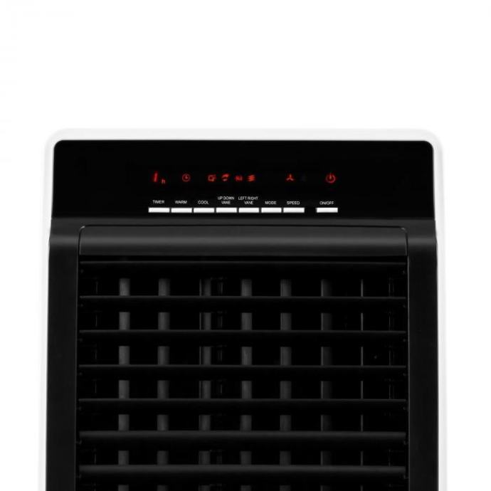 Mobilni 4-u-1 uređaj za hlađenje/grijanje sa ventilatorom i funkcijom čišćenja zraka. Niska potrošnja energije pri snazi grijanja/hlađenja do 2000 w za male i srednje velike prostorije. Praktično upravljanje putem daljinskog upravljača, potpuno mobilan zahvaljujući kotačima. Ugodna sobna temperatura ili osvježavajući povjetarac: s uređajem za grijanje/hlađenje oneConcept CTR-1 Heat dobit ćete ugodnu klimu 365 dana u godini. Inteligentna kombinacija mobilnog 4-u-1 uređaja za grijanje i hlađenje, a toakođer se brine i za čisti zrak zahvaljujući ugrađenom sustavu za filtriranje. Kao mobilan ventilator, oneConcept CTR-1 Heat pruža stalan protok zraka u prostoriji, a po ljetu ugodno rashlađuje. Bez štetnih sredstava u klima uređajima i pri niskoj potrošnji energije samo 65 W će se zrak učinkovito ohladiti. Ako treba dosegnuti brzo rashlađivanje, u 8 l posudu za vodu se mogu staviti kocke leda ili akumulator za hlađenje. Kada su dani kraći a potražnja topline veća, oneConcept CTR-1 Heat uređaj služi za grijanje. Sa snagom 2000 W se dosežu ugodne sobne temperature. Pomoću ventilatora se topli zrak brzo i učinkovito raspoređuje u prostoru. Tri razine rada, načina rada a također mogućnost horizontalnog ili vertikalnog strujanja zraka, omogućuju točnu prilagodbu trenutnim vremenskim uvjetima, veličini prostorije, te položaju mjesta za sjedenje. Jednostavno i brzo upravljanje svim funkcijama je moguće putem daljinskog upravljača ili na LED zaslonu upravljačke ploče. Od tradicionalnih ventilatora oneConcept CTR-1 Heat se razlikuje po tome što se zrak filtrira putem ugrađenog sustava za filtriranje. Na taj način se zrak u prostoriji automatski poboljšava. Ekološki prihvatjiv, štedljiv, visoka snaga i upotrebljivost 365 dana u godini - 4 argumenta i 4 funkcije čine oneConcept CTR-1 Heat uređaj inteligentnim 4-u-1 uređajem za hlađenje/grijanje. Osnovna prednost hladnjaka zraka u usporedbi sa tradicionalnim klima uređajem je u iznimnoj niskoj potrošnji energije. Osim toga artikal je mobilan te nema nikakva ogarničenja - ne treba nikakvu instalaciju cijevi kao kod klima uređaja. Uzmite, molimo vas, u obzir da hladnjak zraka ne predstavlja klasični klima uređaj. Hladnjak zraka funkcionira na principu isparavanja vode/leda iz spremnika.