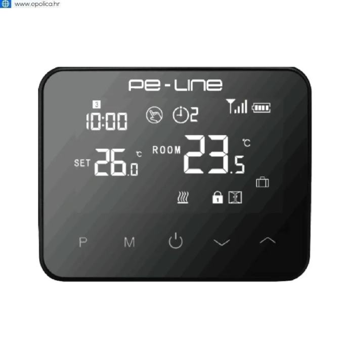 Sobni termostat PE LINE Simplicity - bežični, s tjednim programom - WiFi - crni. Sobni termostat PeLine Comfort s mogućnošću daljinskog upravljanja sustavom grijanja.